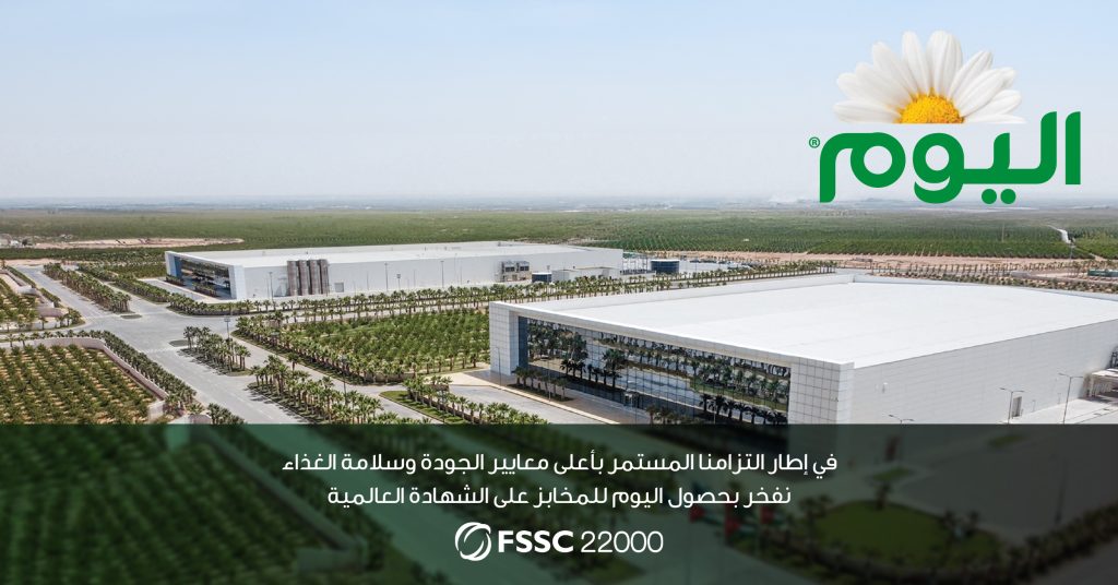تعلن شركة اليوم للمخابز عن حصولها رسميًا على شهادة FSSC22000